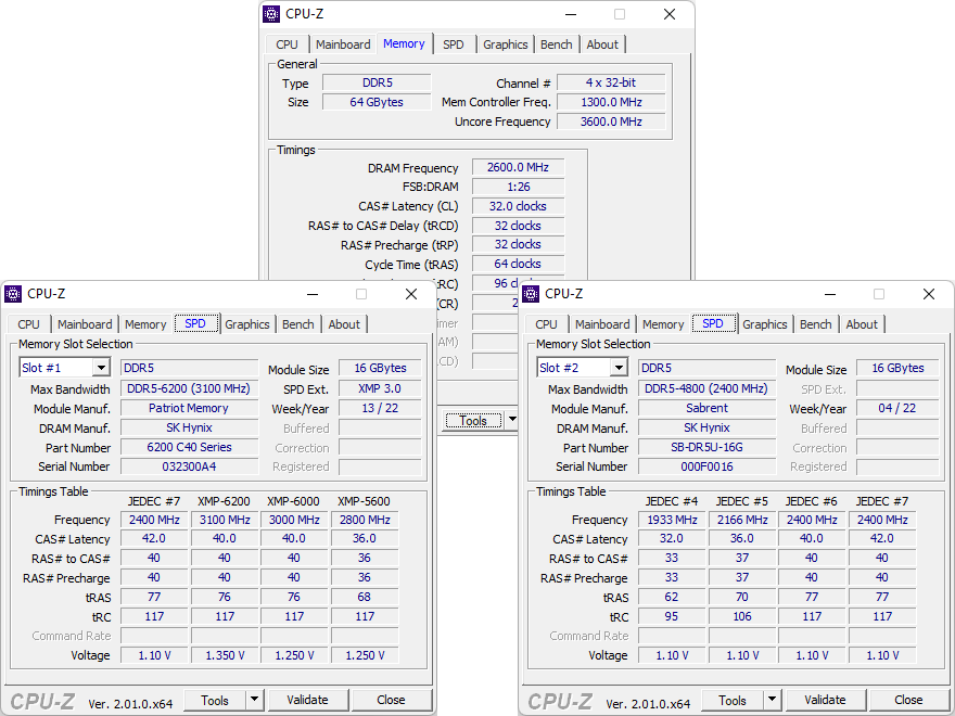 Moving on, we noticed that Sabrent’s supremely overclockable DDR5-4800 used the same ICs as our Patriot Viper Venom RGB DDR5-6200. How far could we go if we paired these?