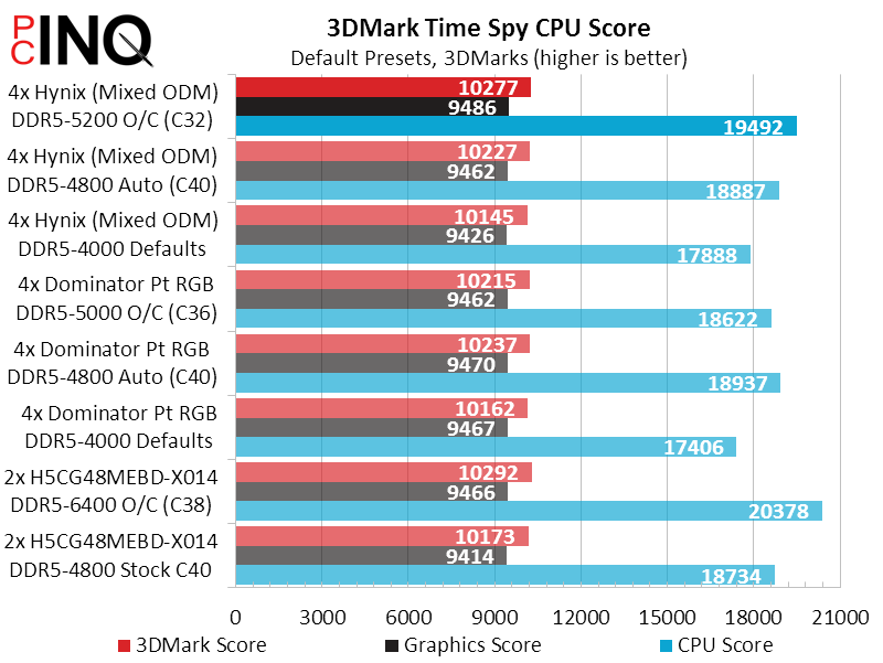 3DMark’s CPU score shows the benefits of faster memory, but not much else.