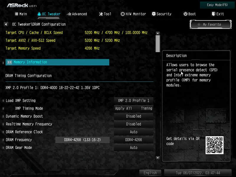 Intel uses the term “Gear Ratio” to define the ratio at which its memory controller operates, with Gear 1 operating the integrated memory controller (IMC) synchronous (1:1) to the DRAM clock, Gear 2 at 1:2 IMC:DRAM clock, and Gear 4 at 1:4 IMC:DRAM clock. Gear 4 is obviously designed for DDR5 motherboards, but all three are available settings on both DDR4 and DDR5 motherboards. And this is where things get interesting: Like its Z690 motherboards, ASRock’s B660M Steel Legend uses Intel’s Gear 1 mode up to DDR4-4000 by default.