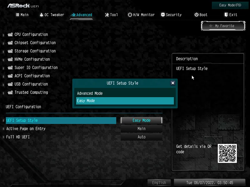 Users who will be making repeated attempts to fine-tune their systems will likely want the B660M Steel Legend to use its Advanced GUI by default, and will find that setting under the Advanced menu of Advanced mode.