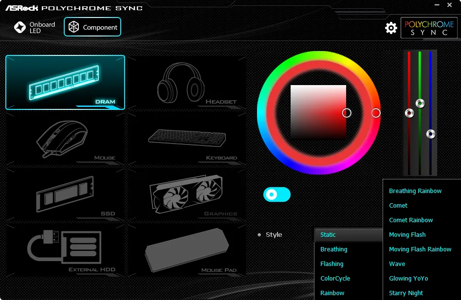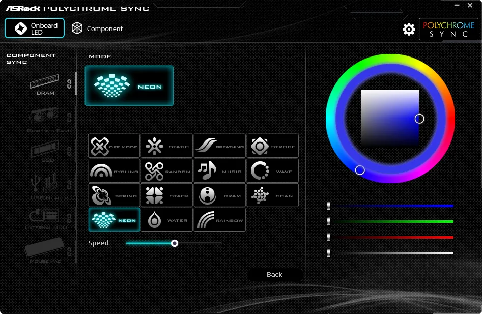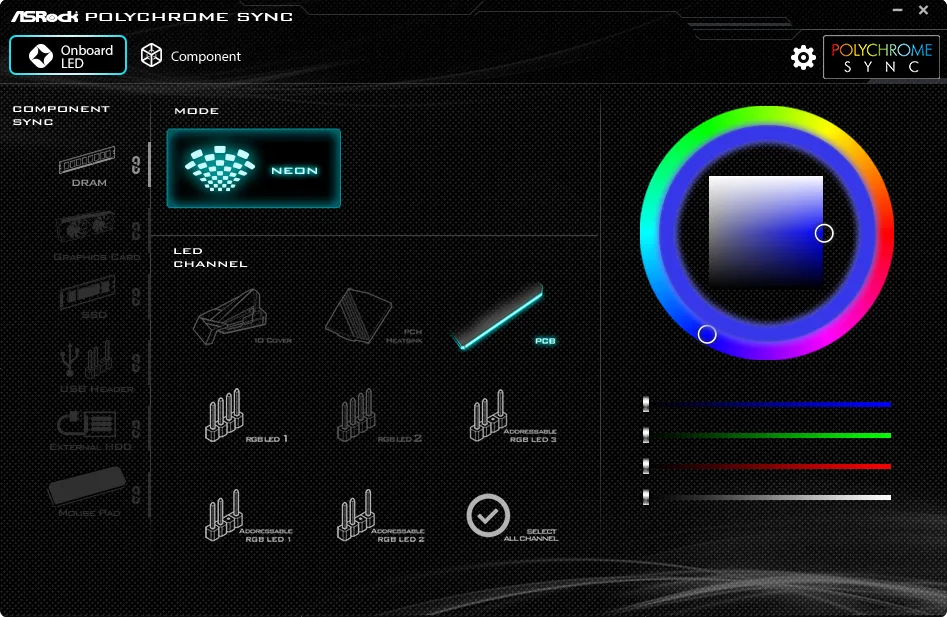 Polychrome Sync worked as expected, controlling both the B660M Steel Legend’s under-board RGB strip and our memory’s RGB lighting. Though the motherboard has no lighting on top, LEDs behind the unmasked “Steel Legend” logo shine though at the board’s front edge.